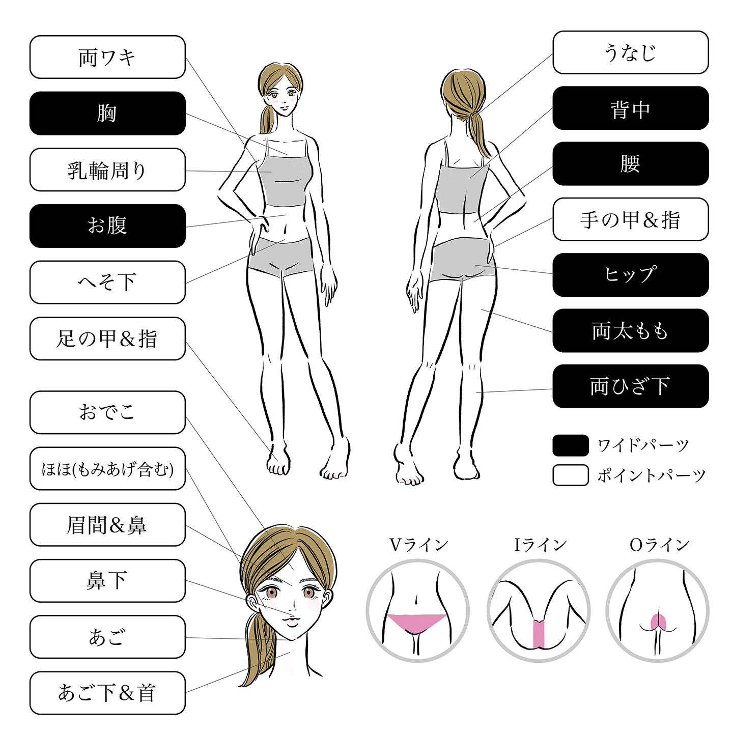 「1カ所だけ脱毛したい」「ワキとVIOだけ脱毛したい」など様々なご要望に対応可能。